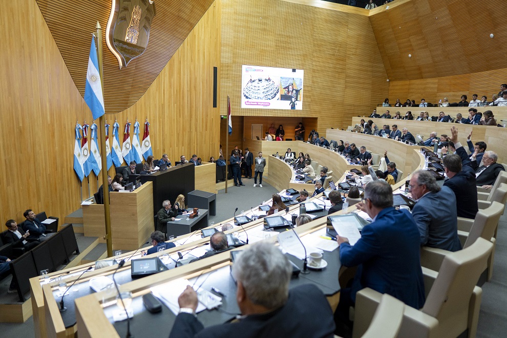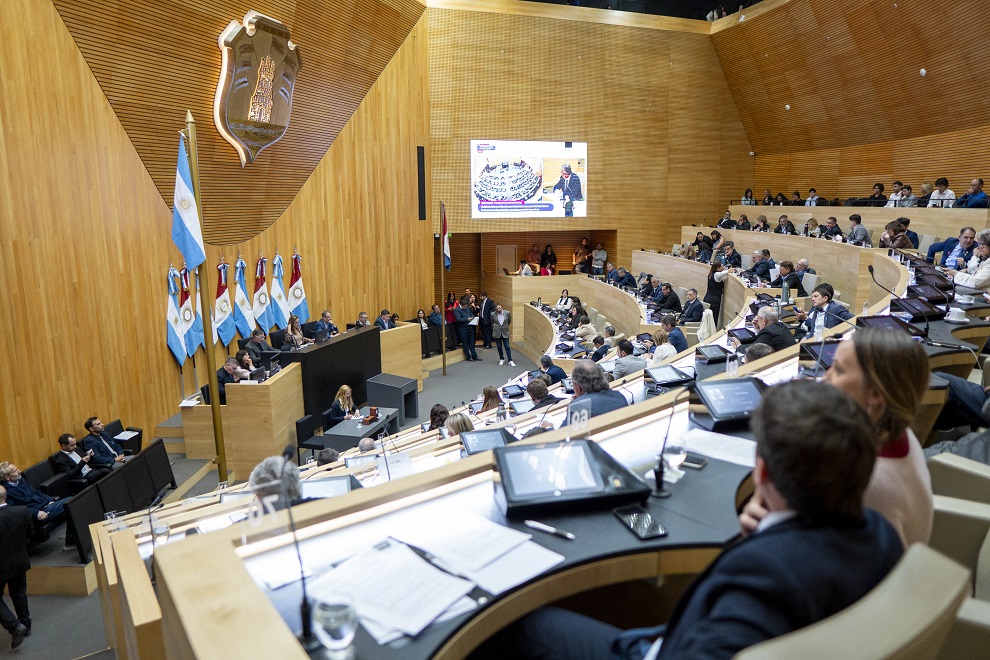 En un momento del pleno legislativo, asumió la conducción el presidente provisorio de la Unicameral, Facundo Torres Lima. Luego retomó Prunotto.