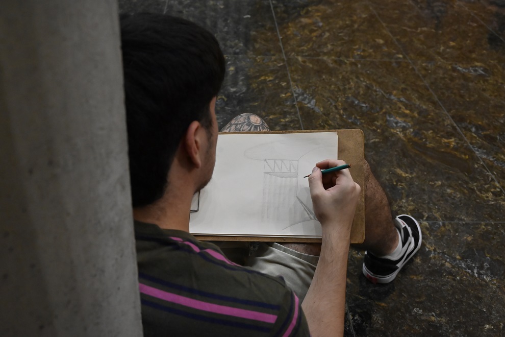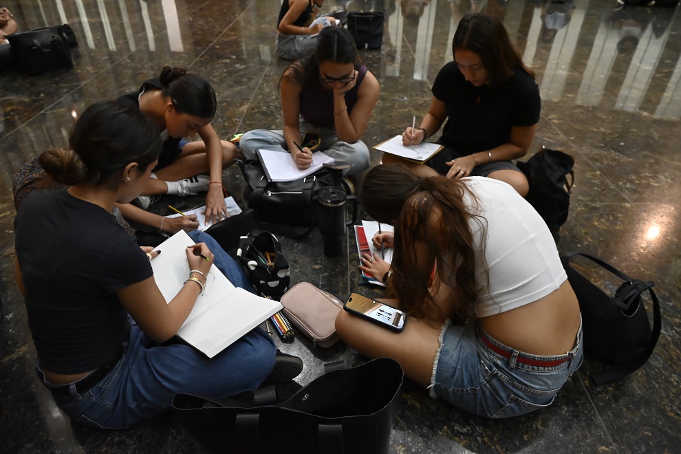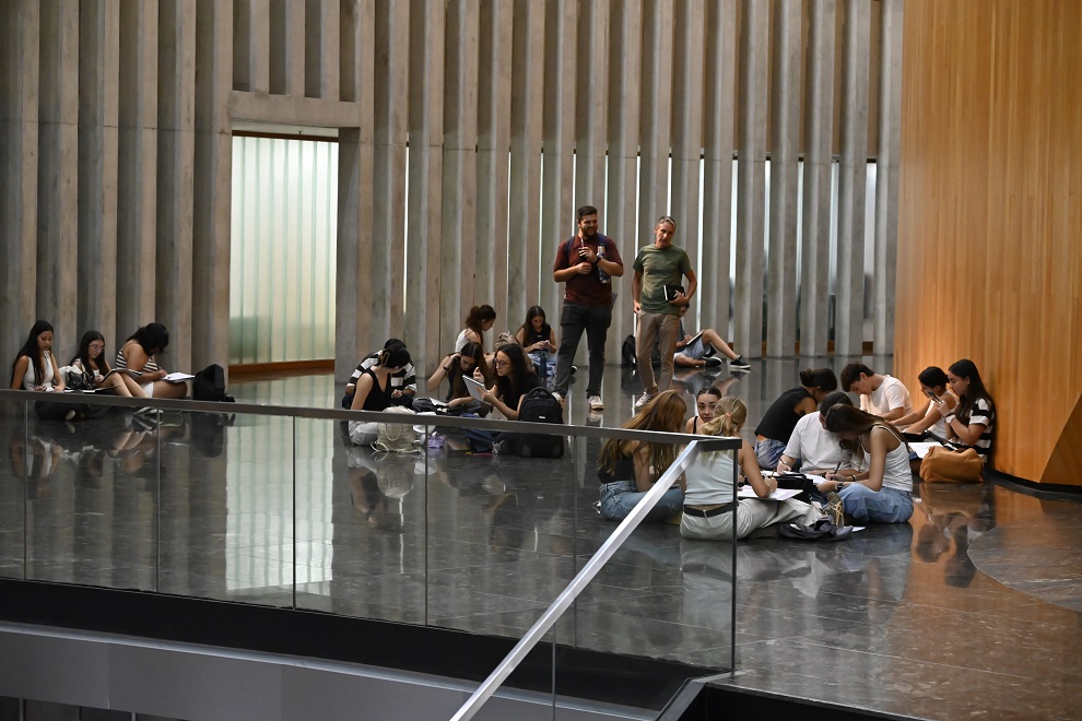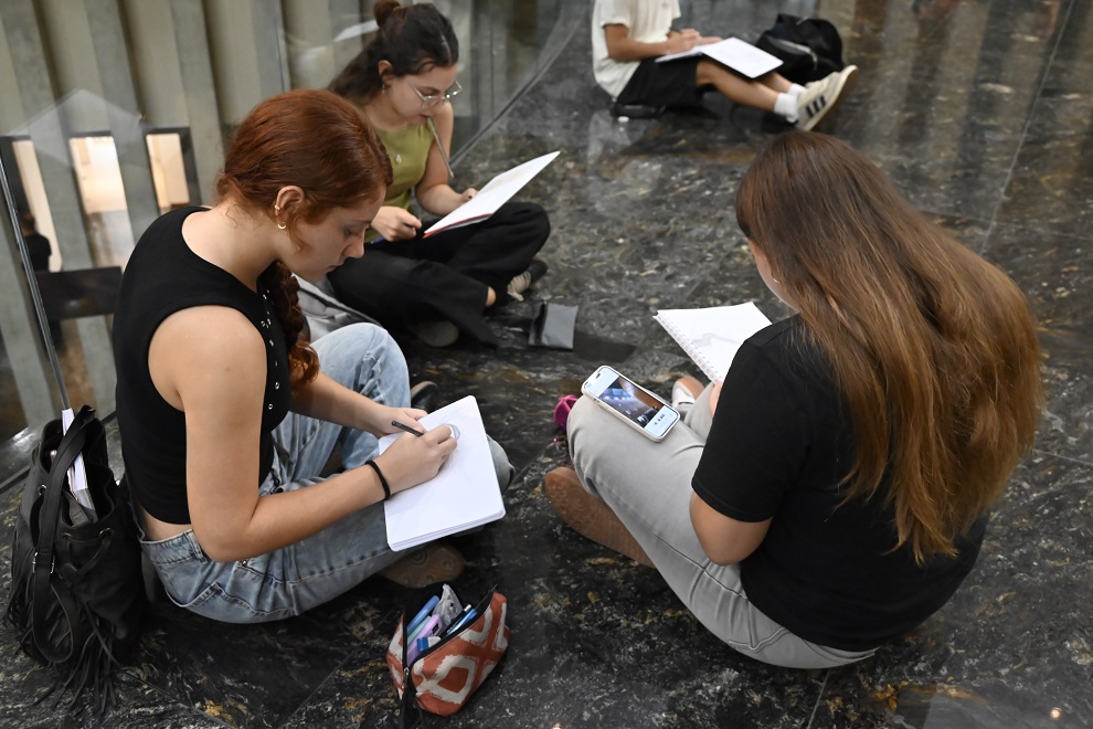 En el marco de las visitas especiales organizadas por la Dirección de Capacitación y Extensión de la Unicameral cordobesa, alumnos de 1º año “A” de la Facultad de Arquitectura, Urbanismo y Diseño, de la Universidad Nacional de Córdoba, tuvieron una clase práctica durante la que realizaron registros vivenciales del Palacio Legislativo, acompañados por los profesores de la cátedra de Morfología I.