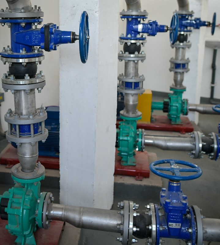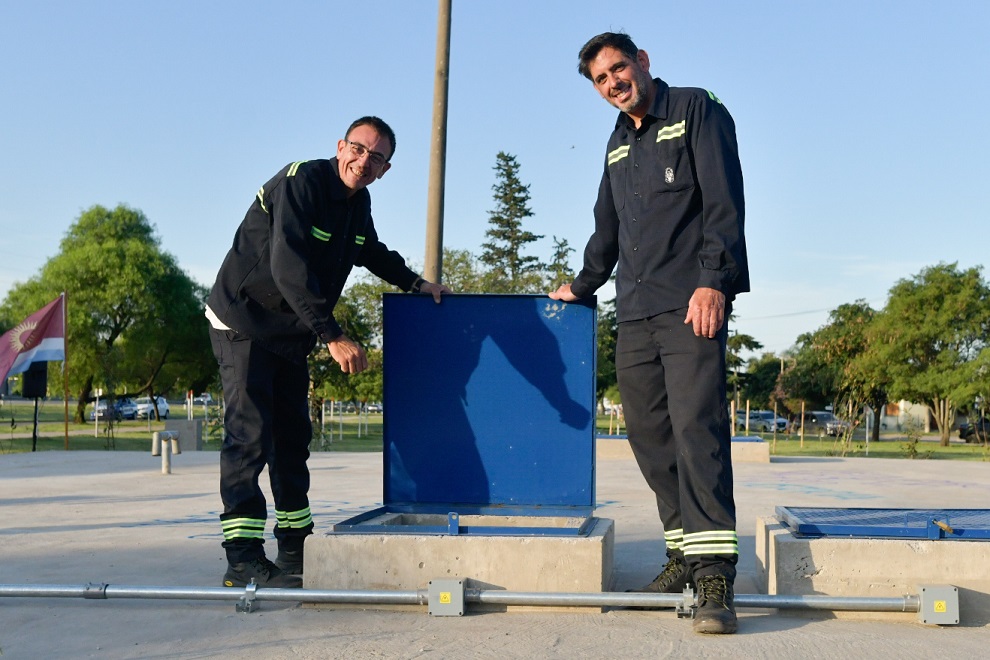 También se hizo un nuevo sistema de bombeo, compuesto por tres bombas centrífugas, colectores de aspiración e impulsión y tableros eléctricos de control, junto con la construcción de una casilla de bombeo que centraliza todo el equipamiento, incluido el sistema de cloración.