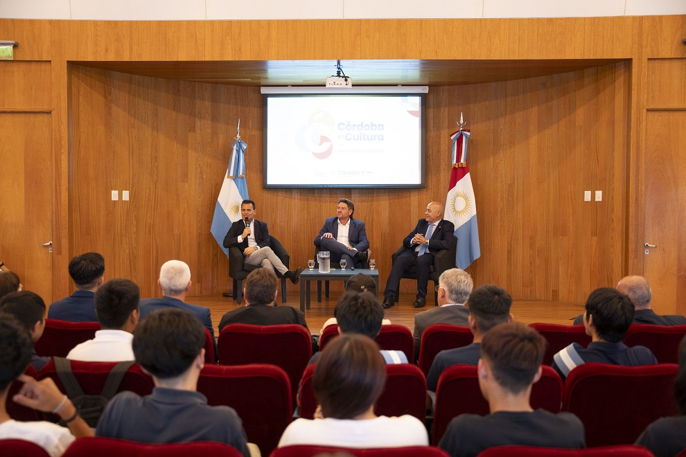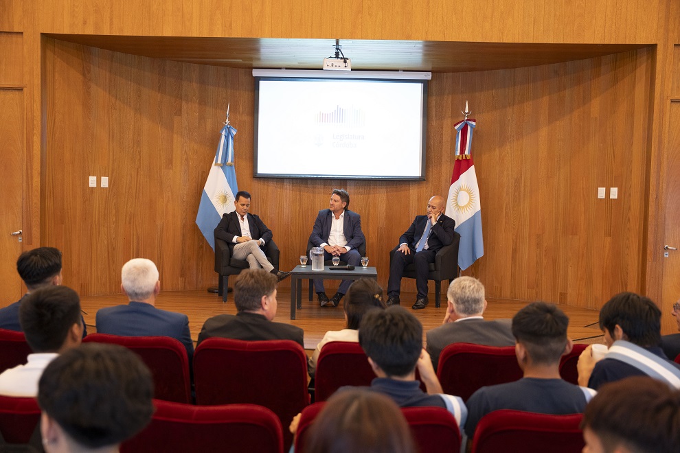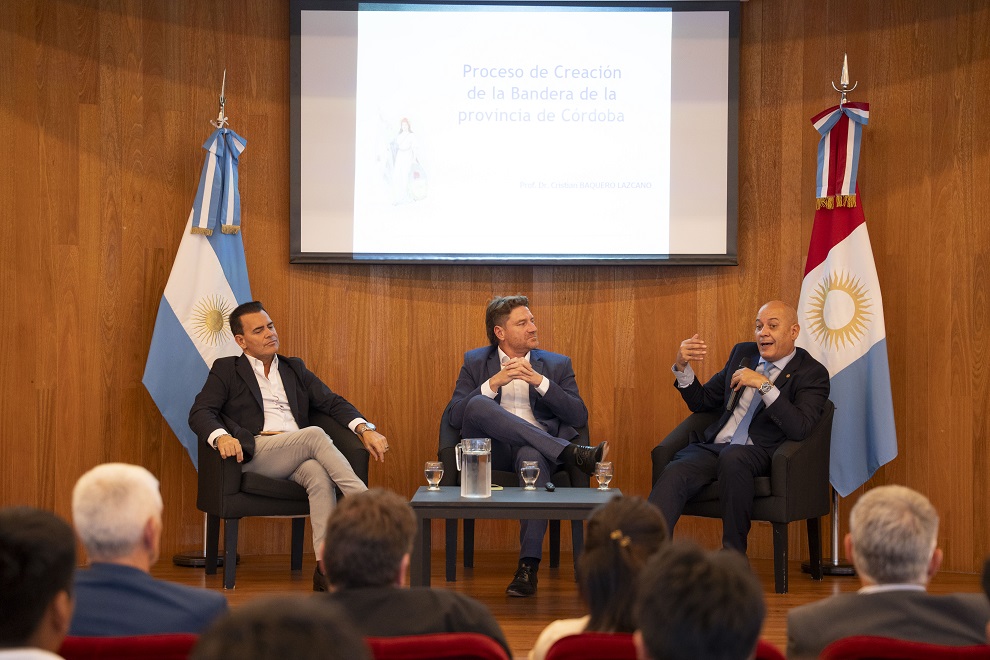 La charla organizada por el legislador Leonardo Limia contó con la participación de dos personalidades destacadas y vinculadas a la historia, la cultura y la construcción simbólica de la identidad cordobesa, el presidente de la Agencia Córdoba Cultura, Marcelo Rodio y el especialista en identidad institucional y creador de símbolos oficiales de la provincial, Cristian Baquero Lazcano.