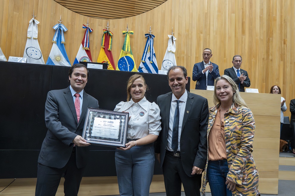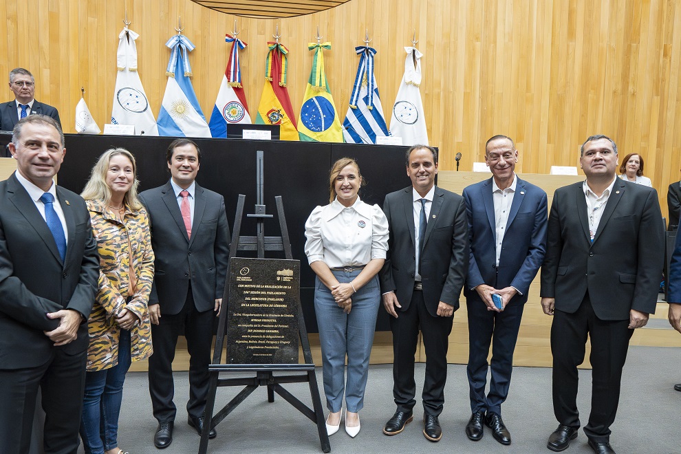 Instantes después, Prunotto entregó a Gamarra una placa con la declaración de interés legislativo por la realización del Parlasur en Córdoba, que destaca su relevancia institucional “para el fortalecimiento del federalismo, la integración regional y la proyección internacional” de la provincia. Acto seguido, Gamarra concedió a la vicegobernadora una placa del Parlasur como gesto de agradecimiento a Córdoba “por su hospitalidad y por recibir esta sesión” del cuerpo regional.