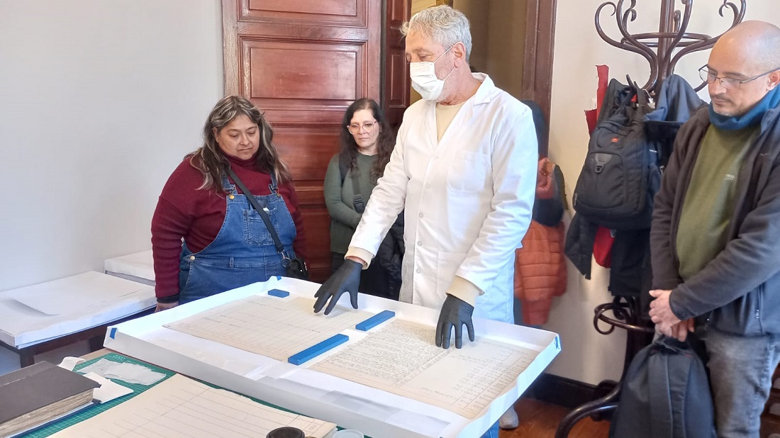 La visita continuó en el Archivo Histórico, donde pudieron apreciar documentos de gran valor patrimonial. Allí, Hernández explicó de qué manera se conservan y resguardan. También visitaron el Taller de Encuadernación y posteriormente presenciaron trabajos de conservación que se están realizando en libros y documentos.