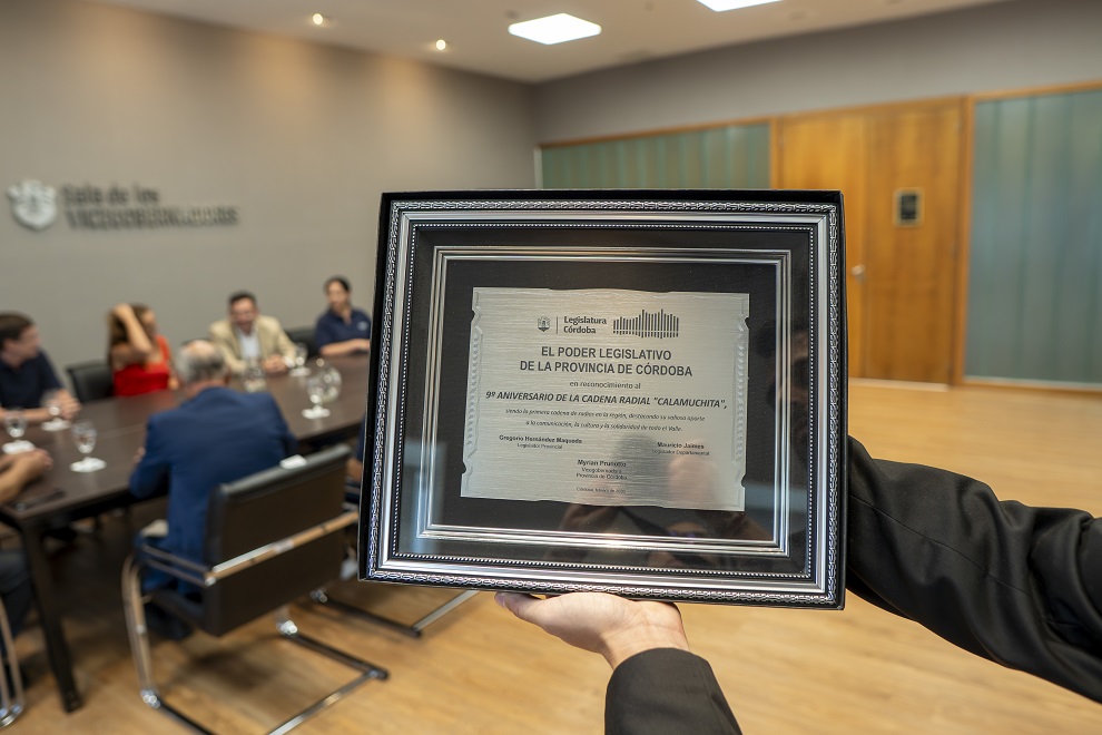 La vicegobernadora de Córdoba, Myrian Prunotto, encabezó este miércoles el reconocimiento que la Legislatura provincial otorgó a la emisora radial Cadena Calamuchita por su 9º aniversario, en el marco de una iniciativa presentada por los legisladores Gregorio Hernández Maqueda y Mauricio Jaimes.