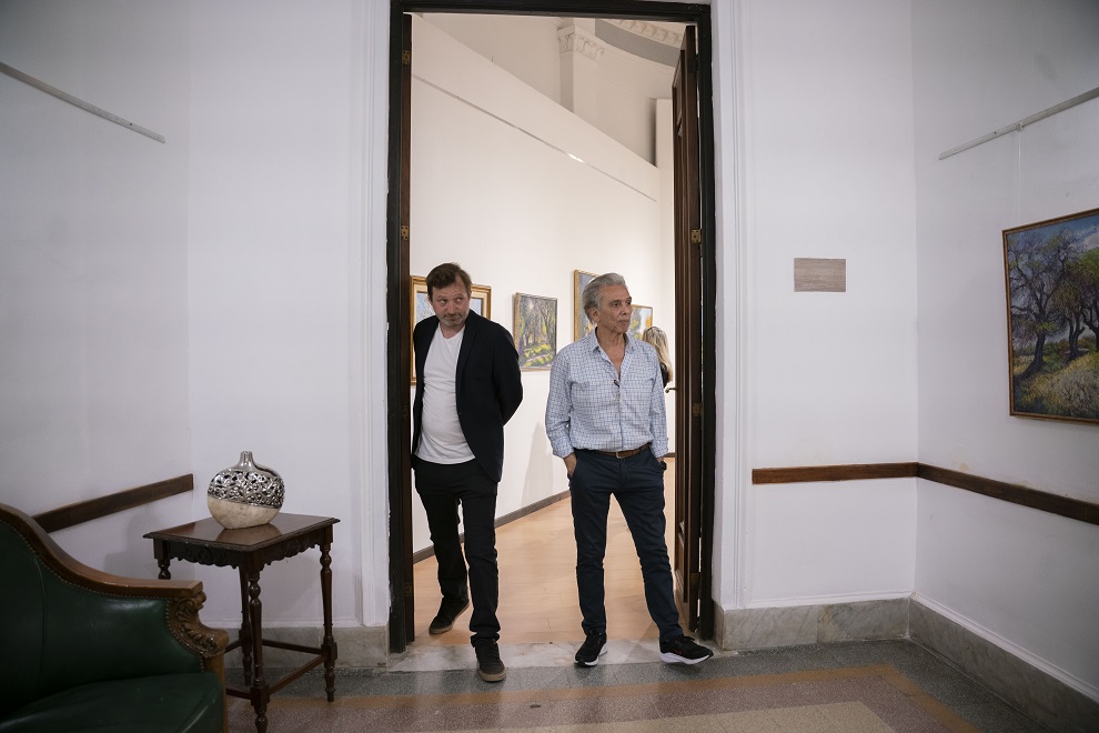 Acompañado por el director de Asuntos Culturales y Patrimoniales de la Unicameral, Federico Menis, el reconocido cantante de Cruz del Eje visitó la ciudad de Córdoba especialmente para observar los cuadros de paisajes realizados por el pintor de Deán Funes, que se exhiben en las salas del antiguo Palacio Legislativo.
