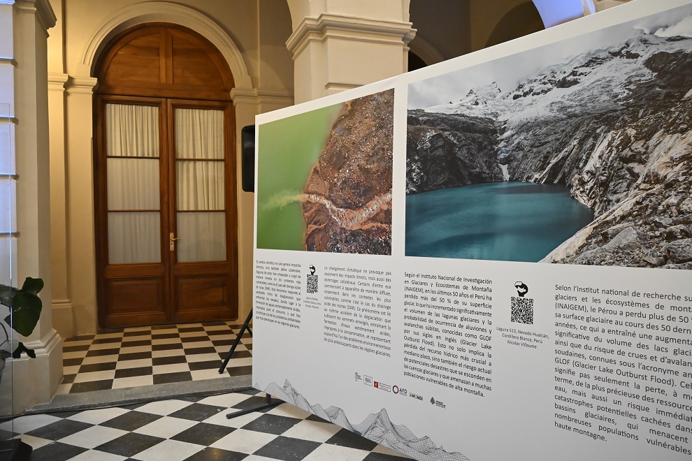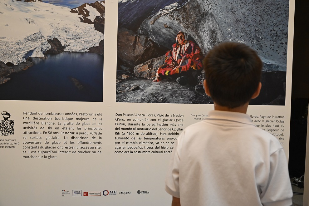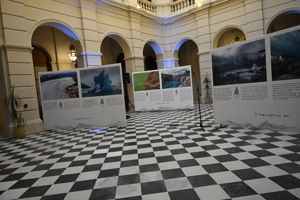 La muestra permite adentrarse en los glaciares emblemáticos de la cordillera andina. Está compuesta por 10 fotografías y contiene mensajes que concientizan sobre el cambio climático.