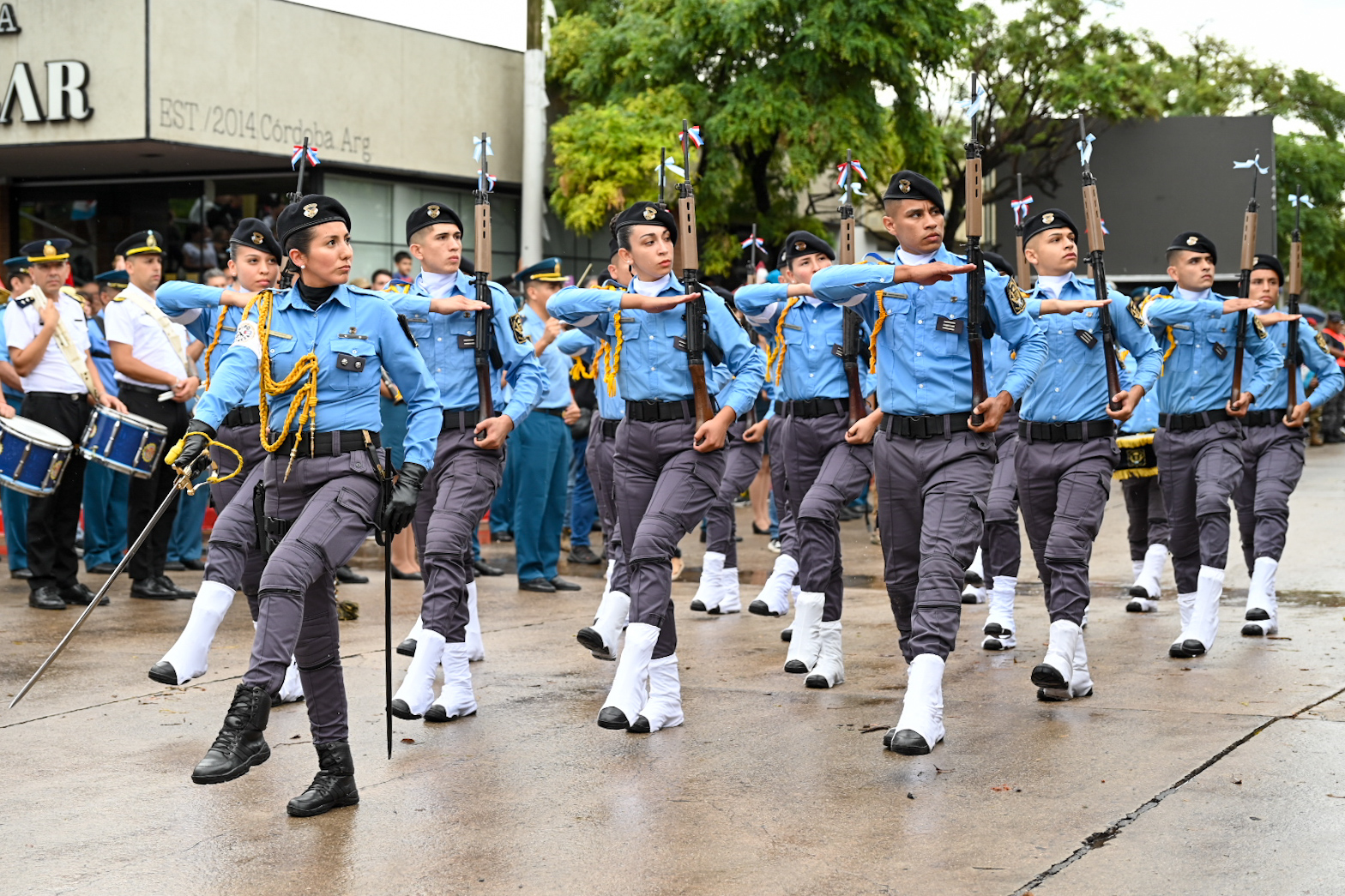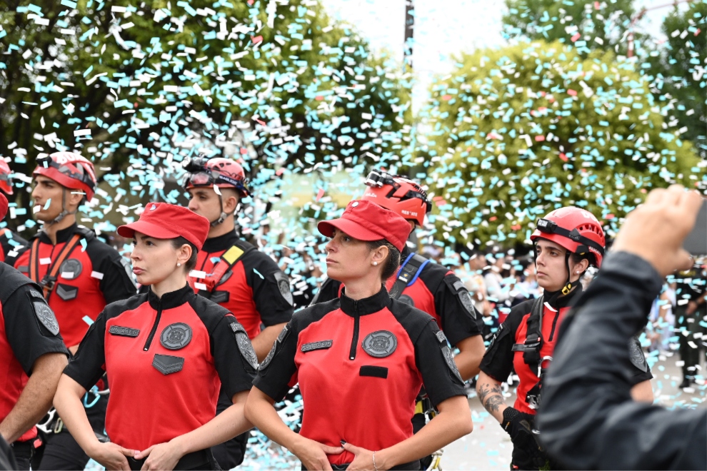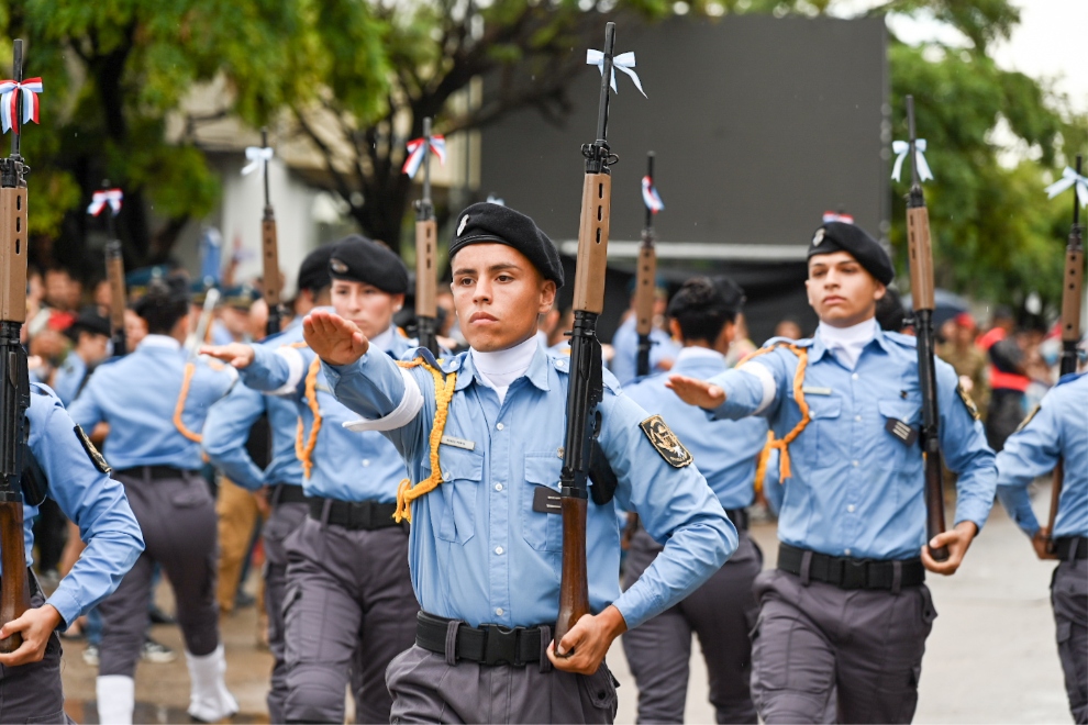 El desfile contó con la participación de cerca de 700 efectivos y cadetes de distintas fuerzas de seguridad y defensa, junto a delegaciones de instituciones educativas de nivel inicial, primario, secundario, terciario y universitario, además de centros de jubilados, agrupaciones gauchas, clubes, scouts y colectividades.