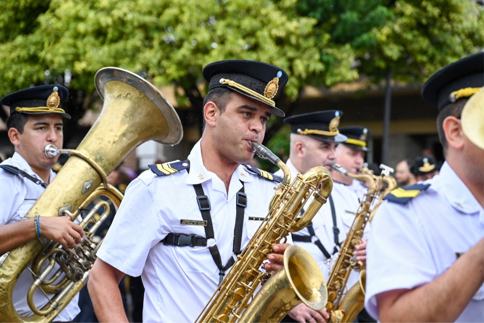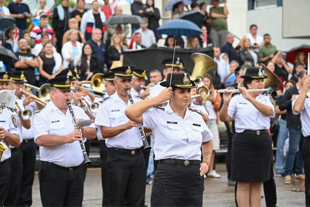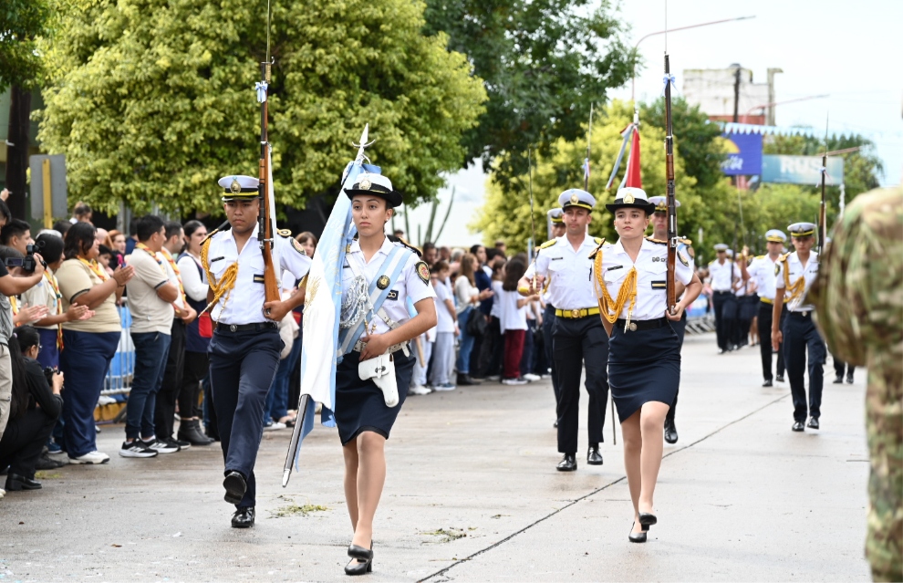 El acto incluyó un desfile cívico-militar del que participaron veteranos de guerra, efectivos del Ejército Argentino, Fuerza Aérea, Gendarmería Nacional, Policía de la Provincia, Fuerza Policial Antinarcotráfico, Servicio Penitenciario, Bomberos Voluntarios, instituciones educativas y organizaciones civiles de la localidad.
