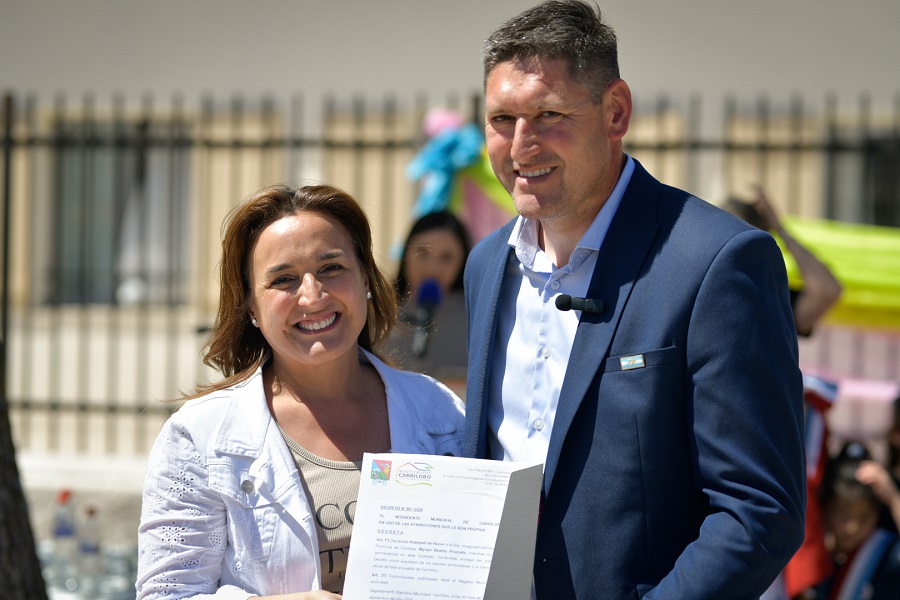 En Carrilobo, la vicegobernadora fue recibida por el intendente local, Leonardo Clara, y estuvo acompañada por el legislador Lucas Valiente, el subdirector de Infraestructura Escolar del Ministerio de Educación, Maciel Balduzzi, y las directoras de Desarrollo Territorial y Vinculación de la Legislatura, Leticia Allocco y Silvina González.