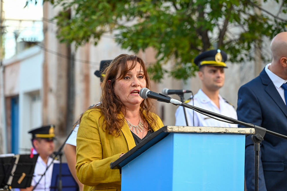 La vicegobernadora de Córdoba, Myrian Prunotto, presidió este lunes el acto del primer izamiento de la nueva bandera de Deán Funes, realizado en el marco de los festejos por el 151° aniversario de la ciudad, cabecera del departamento Ischilín.