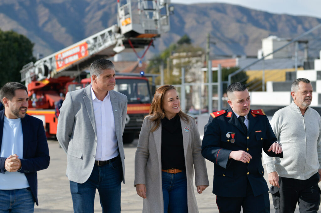 Acompañada por el legislador Matías Chamorro; el intendente anfitrión, Raúl Cardinali; y el vocero de la Secretaria de Gestión de Riesgo Climático, Catástrofes y Protección Civil, Roberto Schreiner; la vicegobernadora entregó un aporte provincial de 30 millones de pesos a los Bomberos de la localidad cabecera del departamento Punilla.