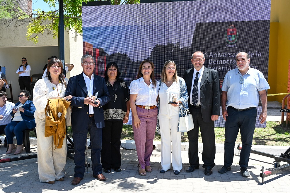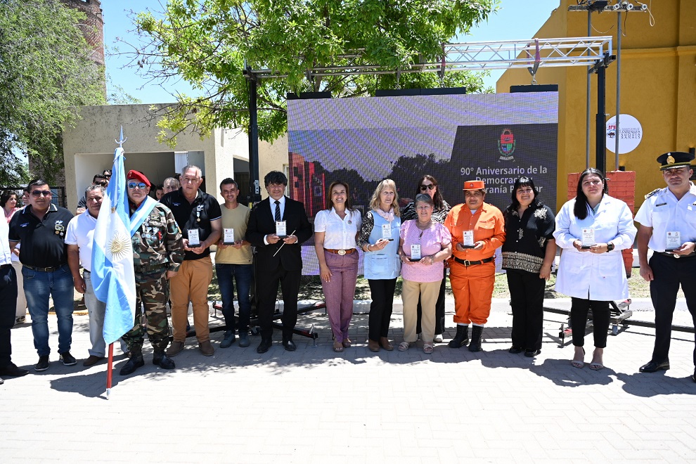 Las autoridades descubrieron placas alusivas, recorrieron el Museo de la Democracia y presenciaron un desfile de las instituciones locales.