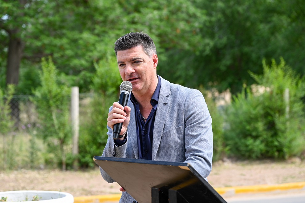 En Villa Dolores, recibió a Prunotto el intendente Maximiliano Rivarola, junto al que compartió la entrega.