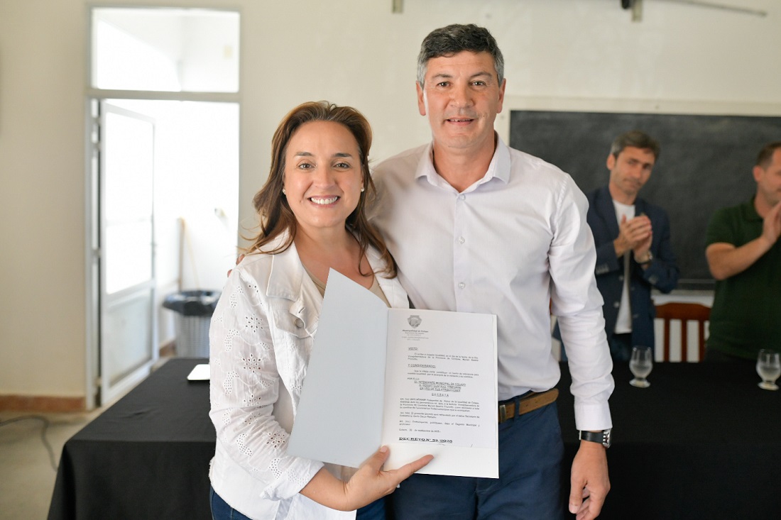 En su visita, la presidenta de la Legislatura de Córdoba fue recibida por el intendente local, Sergio Temporini, y estuvo acompañada por el legislador departamental, Lucas Valiente. Además, asistieron al acto el subdirector de Infraestructura Escolar del Ministerio de Educación, Maciel Balduzzi, y las directoras de Desarrollo Territorial y Vinculación de la Legislatura, Leticia Allocco y Silvina González, respectivamente.