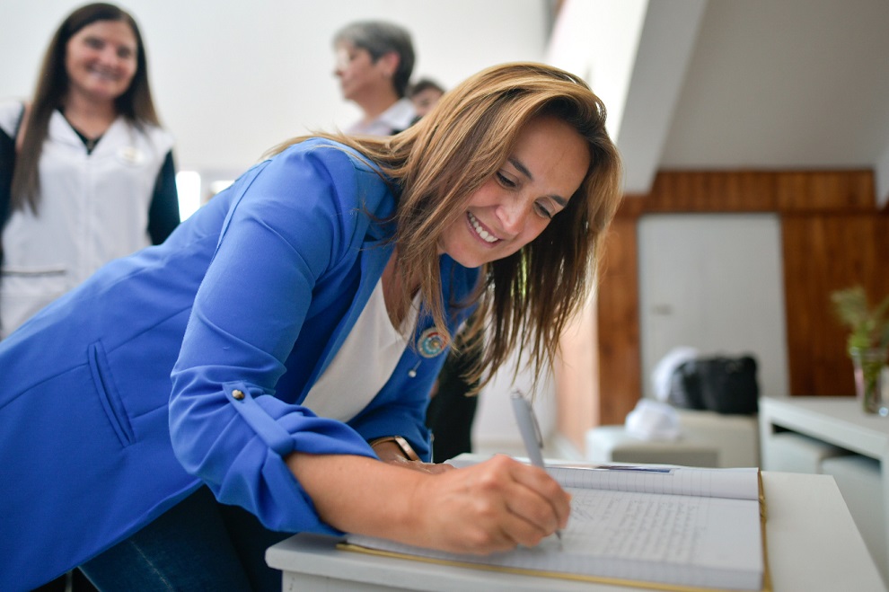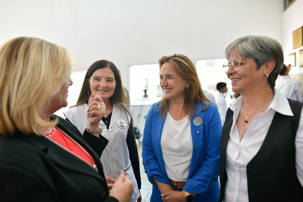 Prunotto fue recibida por la intendenta de Ballesteros, Graciela Sánchez, y por la directora del establecimiento educativo, Alejandra Cornelio.