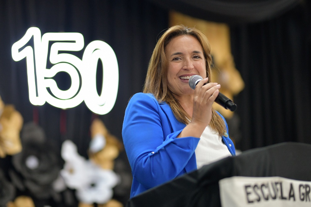 La vicegobernadora de Córdoba, Myrian Prunotto, presidió este viernes en Ballesteros el acto central por los festejos del 150° aniversario de la Escuela General San Martín.