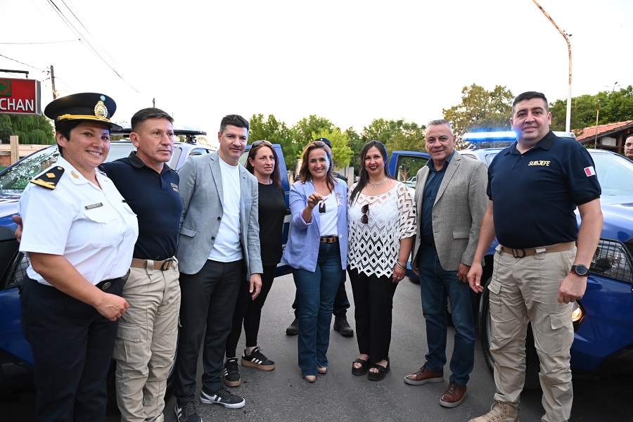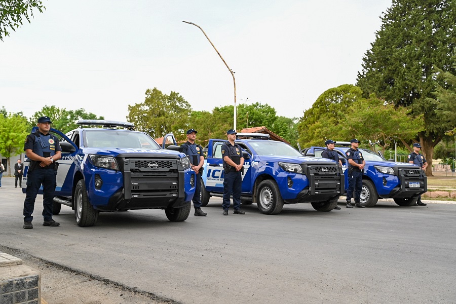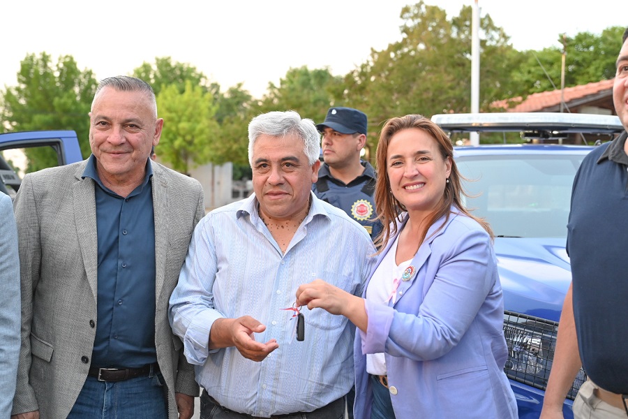 La vicegobernadora de la provincia, Myrian Prunotto, presidió este martes el acto de entrega de móviles policiales cero kilómetros para reforzar la seguridad de los departamentos Pocho y Minas.