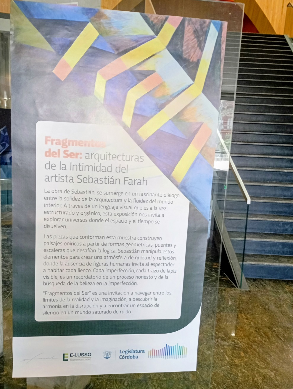 Este martes, quedó inaugurada en la sede de la Legislatura de Córdoba, la muestra “Fragmentos del Ser: arquitecturas de la intimidad”, de Sebastián Farah, una obra que se sumerge en un fascinante diálogo entre la solidez de la arquitectura y la fluidez del mundo interior.