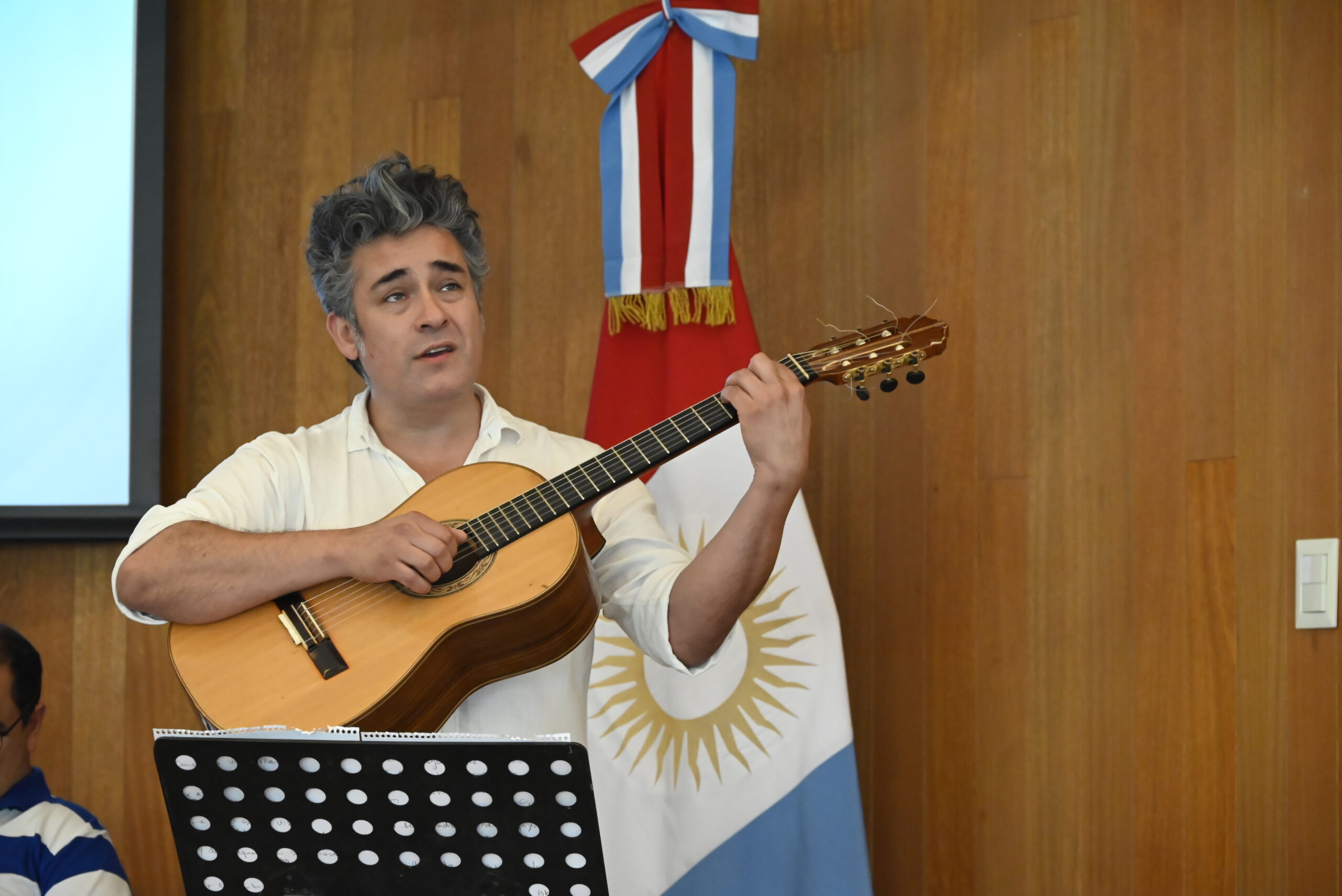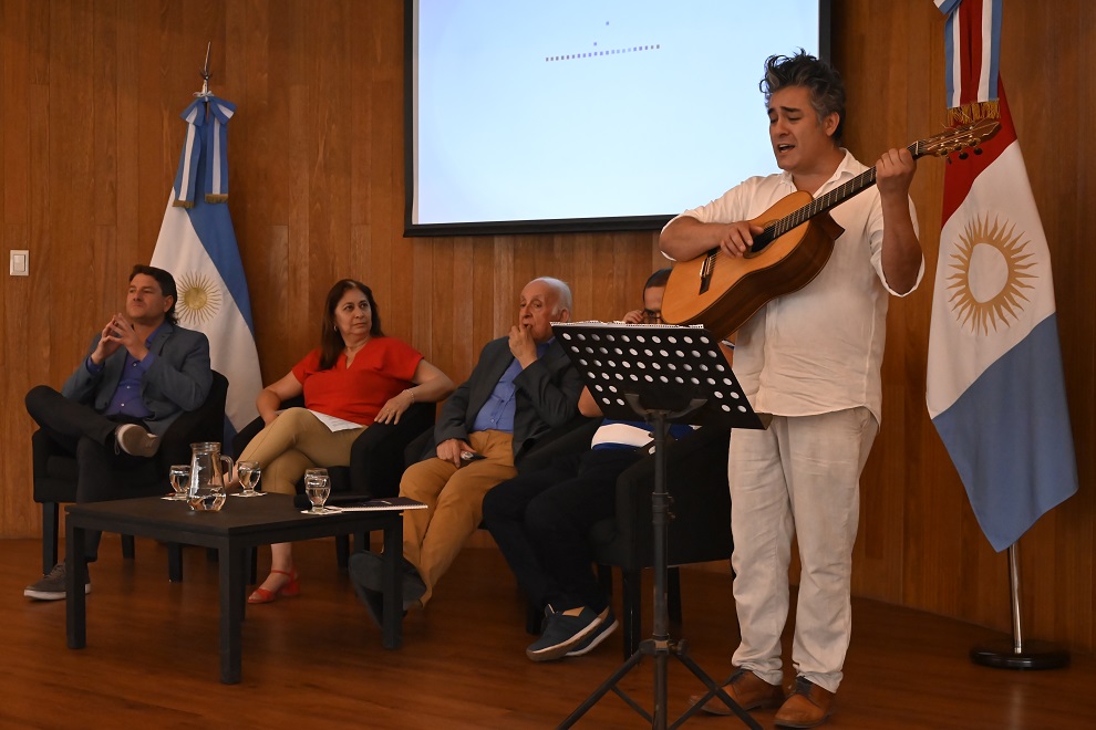 El momento más emotivo del encuentro llegó de la mano del cantante Cristian De La Fuente, quien interpretó dos temas tradicionales de Paraguay, y con su música logró cautivar a los presentes en la sala.