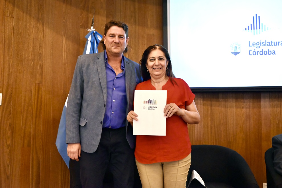El legislador Leonardo Limia hizo entrega de un reconocimiento, aprobado en forma unánime por los legisladores cordobeses, a Marta Guerreño López, declarando de interés legislativo al conversatorio “Historia y hermandad entre dos pueblos: 70 años del exilio de Perón en Paraguay”.
